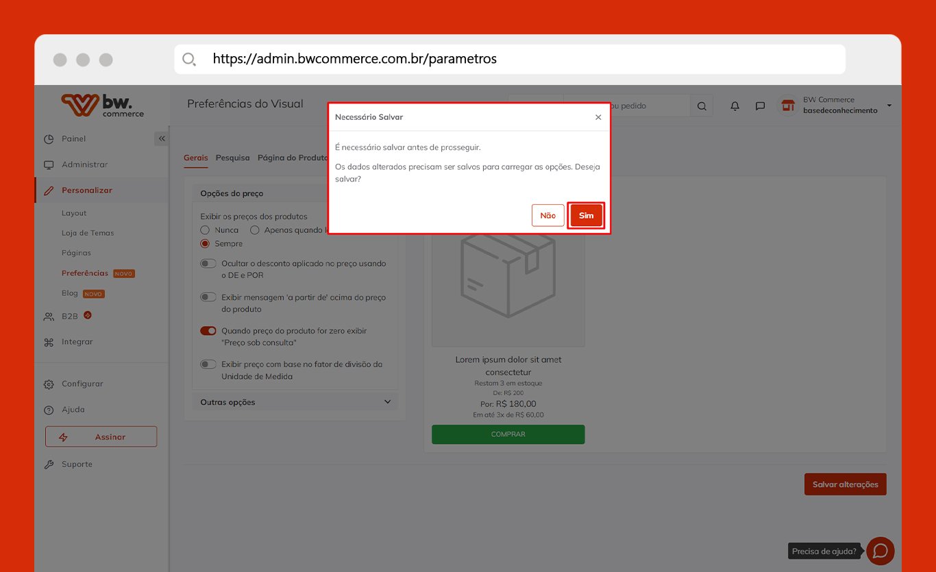 Passo 01) Acesse o painel administrativo da BW Commerce e selecione Personalizar > Preferências > Proteção de dados.
