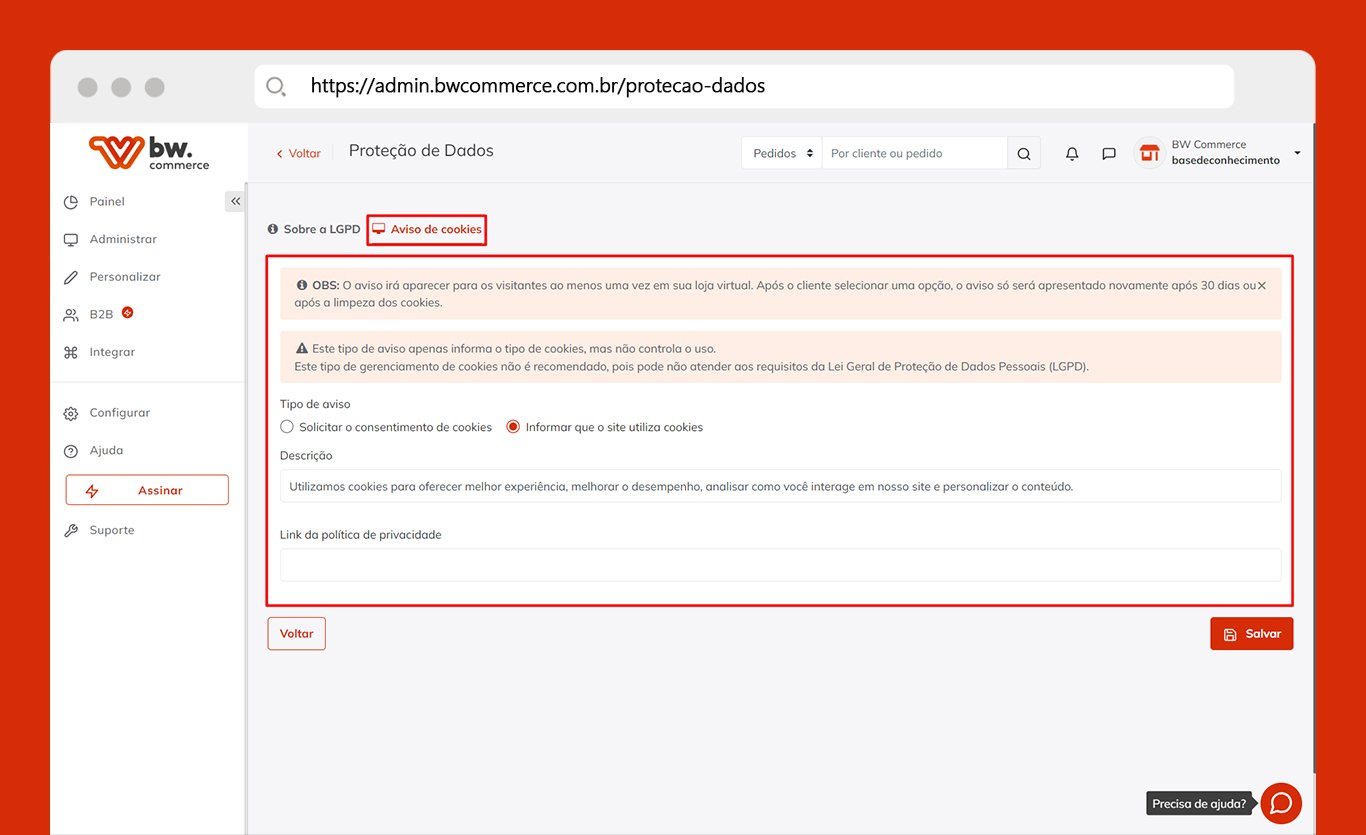 O recurso tem como objetivo solicitar ao usuário que acessa a loja virtual o consentimento para que os dados sejam processados. Como controlador é indispensável que saiba que tem o compromisso obrigatório de informar sobre a ação, dando ao visitante o direito de escolher entre aceitar ou recusar.